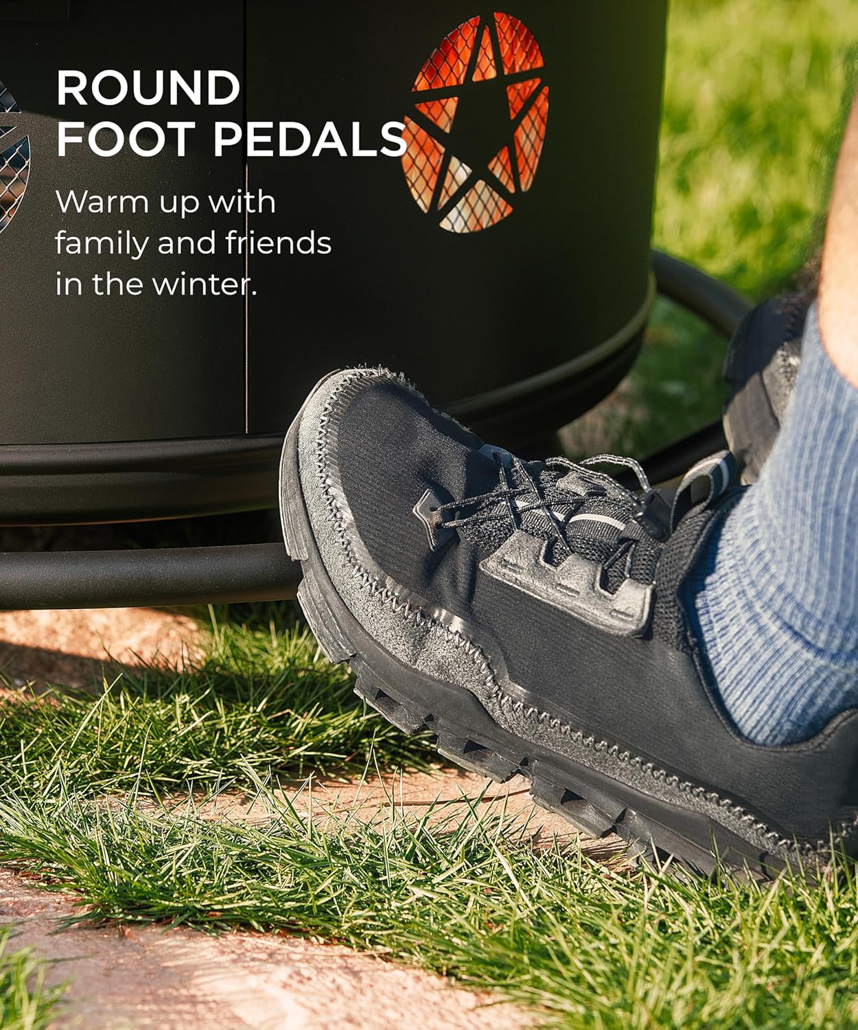 • 【SAFETY & DURABLE】A SUNOUTLY wood-burning fire pit can accommodate up to 40 pounds of wood, provide a roaring fire, and adequate warmth. A firepit with four legs and sufficient weight can provide stability on uneven terrain. In addition four legs, the bottom of the fire pit also has a circle of fire ring, which serves to enhance the stability of the fire pit and can keep people at a safe distance from flames.