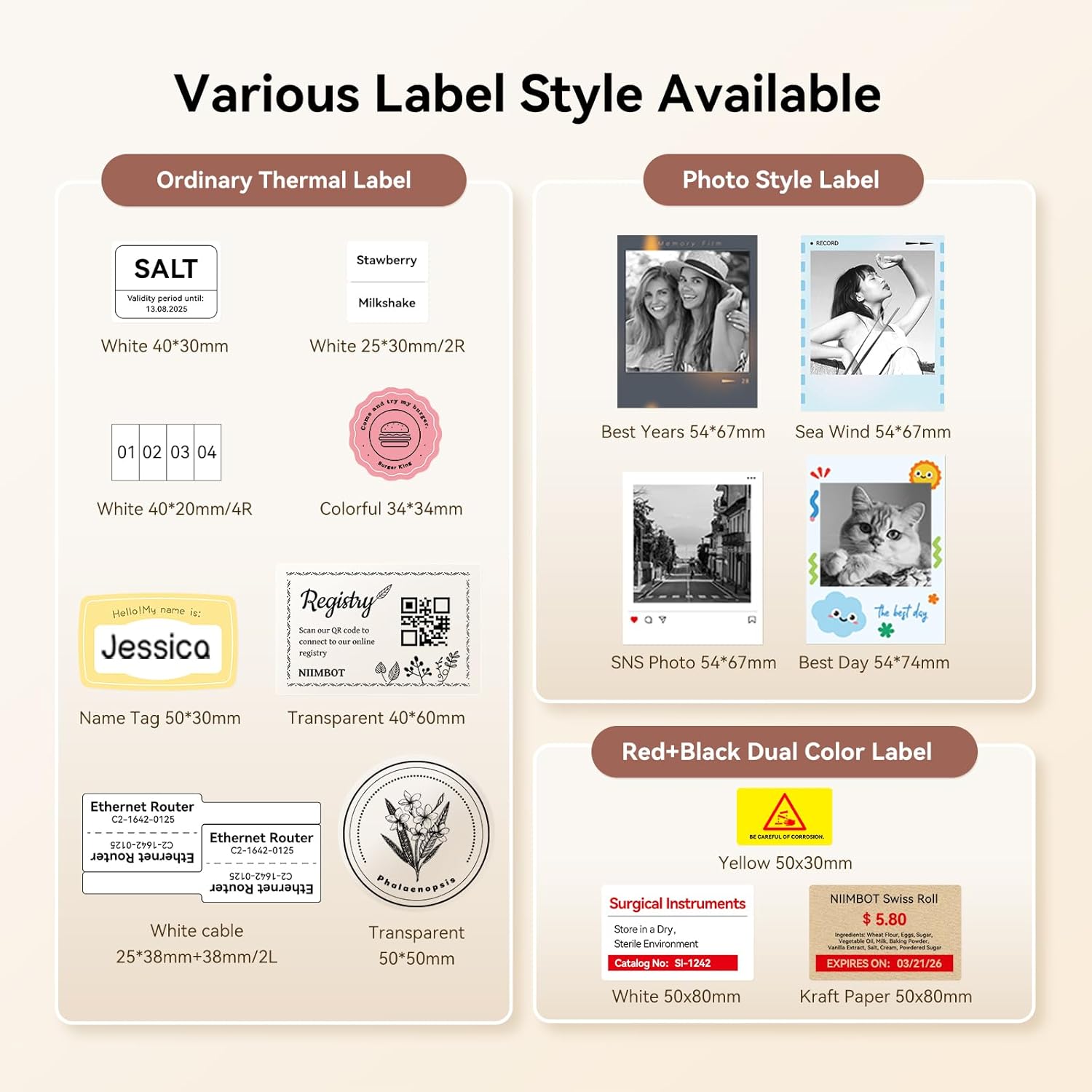 • 【Photo and Color Printing Label】In addition to the regular white, color and clear labels, we have developed a photo style label which can be used as stickers on scrapbook, cards in wallets or bookmarks in books, and red&black dual color label that you can highlight important information in red.