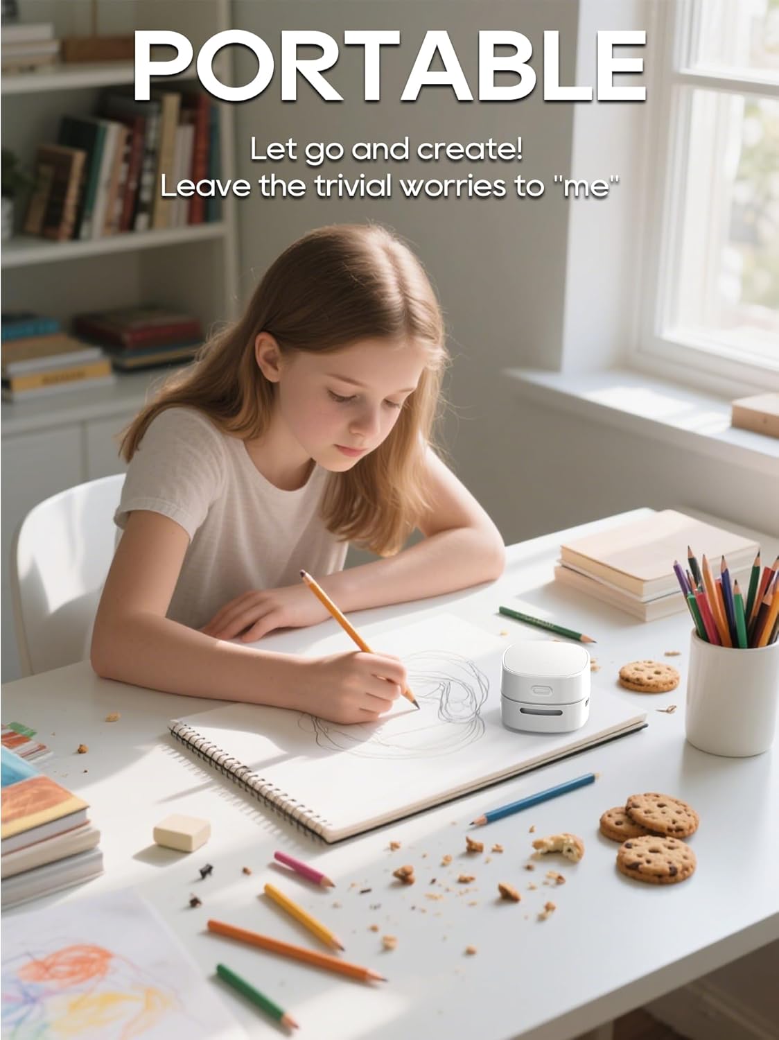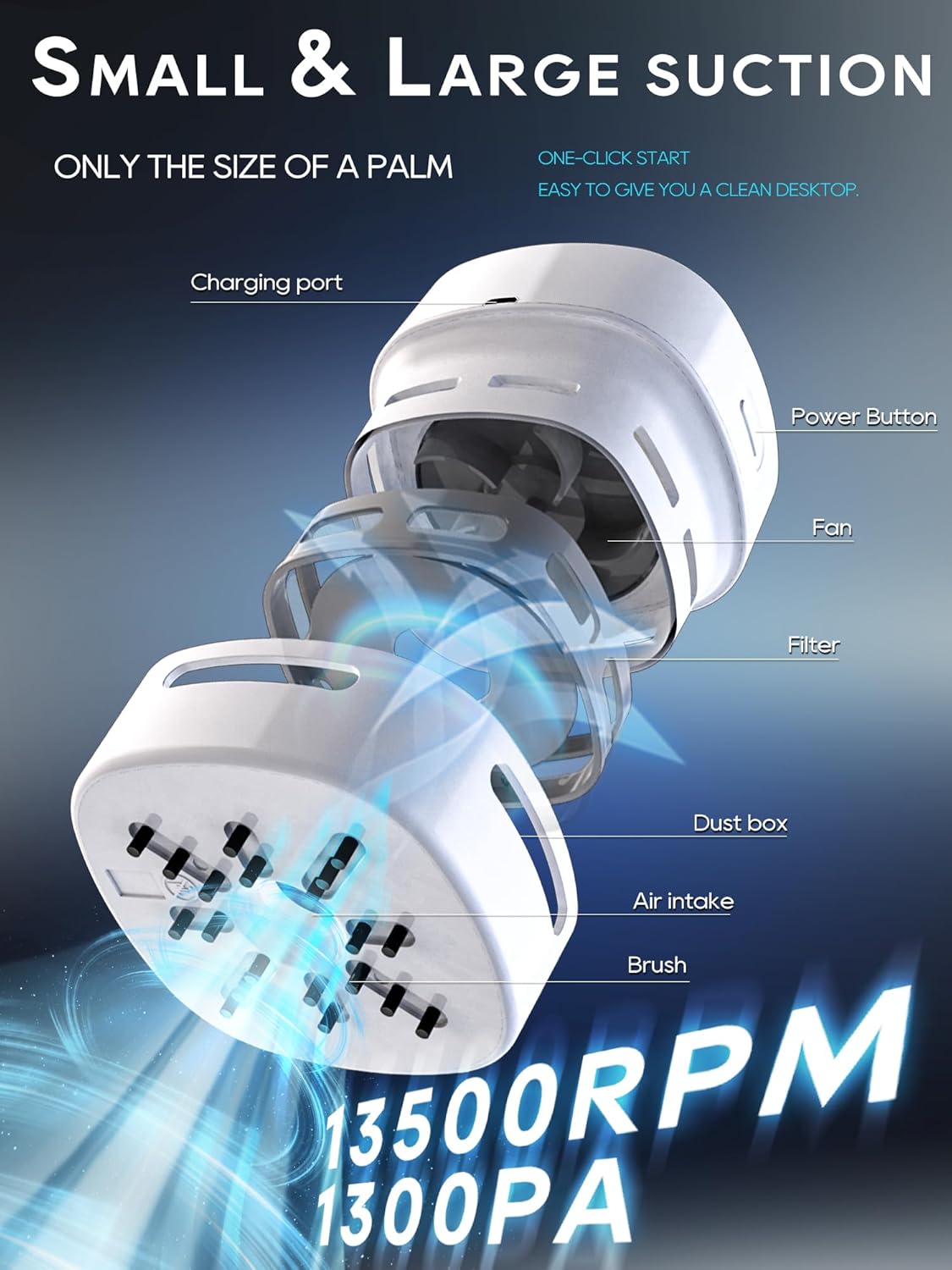 • Cordless & Portable: Designed for convenience, this handheld tabletop vacuum is fully cordless, allowing you to clean freely without tangled cables. Lightweight and easy to carry, it’s ideal for office desks, home tables, kitchen counters, and even car interiors.