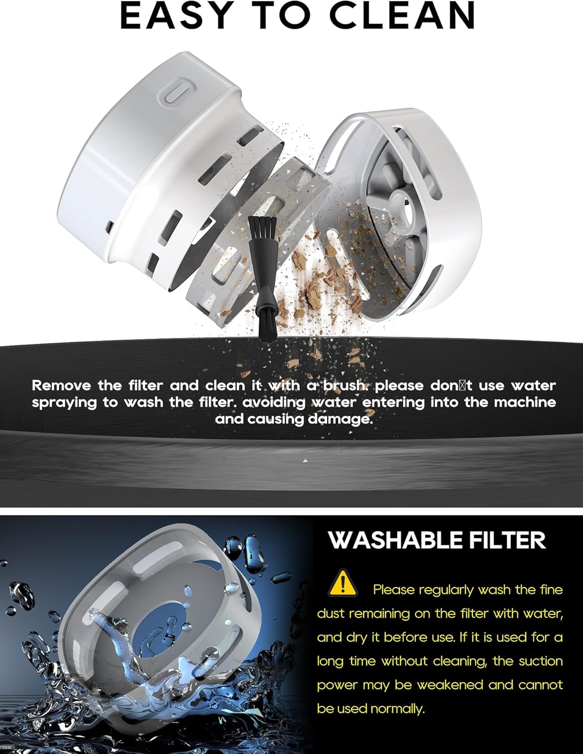 • Easy to Clean & Maintain: Features a detachable dust container that makes emptying and cleaning effortless. Just twist, dump, and go—keeping your space neat and tidy has never been easier.