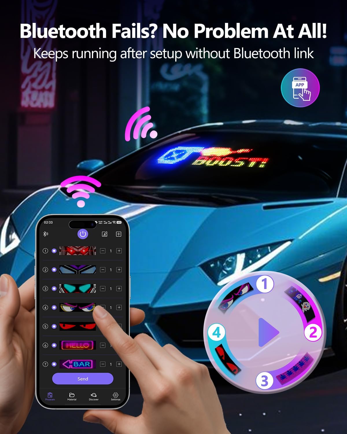 [Industry-Leading Innovative Upgrade] The 2025 Multi-Functional 2pcs 7in x 3in LED Car Sign unleashes next-gen power with cutting-edge full-color LED bead tech. Blazing with ultra-bright intensity, it’s engineered for maximum impact – featuring a programmable timer for smart control and insanely low power draw. With a stunning full-color light show at up to 60FPS, it grabs attention like never before and turns every drive into a spectacle!