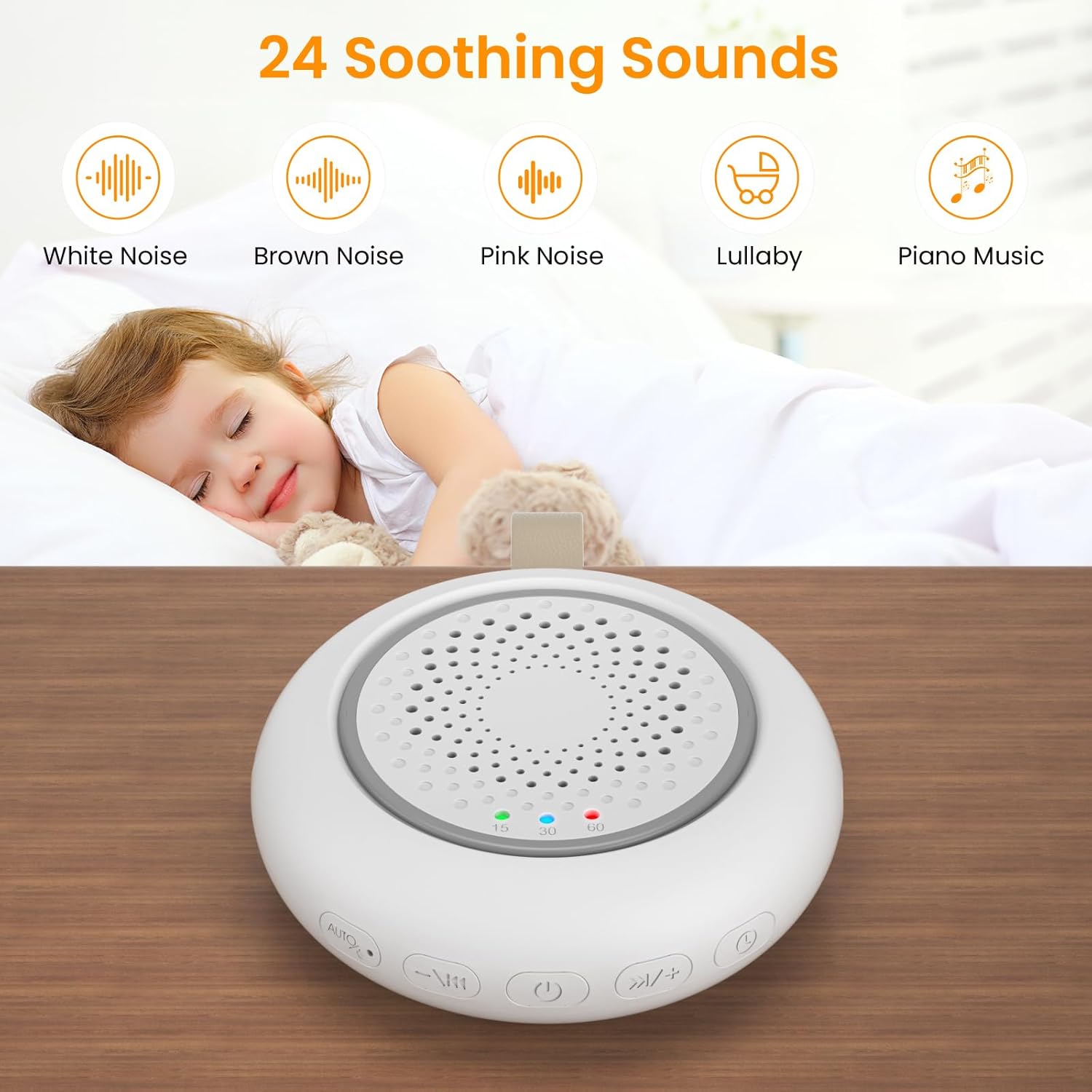 Portable White Noise Machine with Night Light, 24 Soothing Sounds for Baby & Adults, Rechargeable Sound Machine for Sleep, Noise Canceling for Office, Travel, Nursery, Gifts for Mom