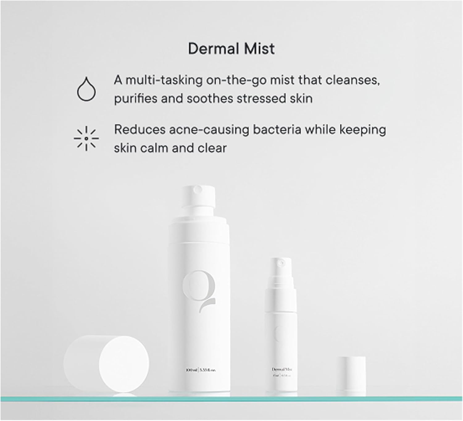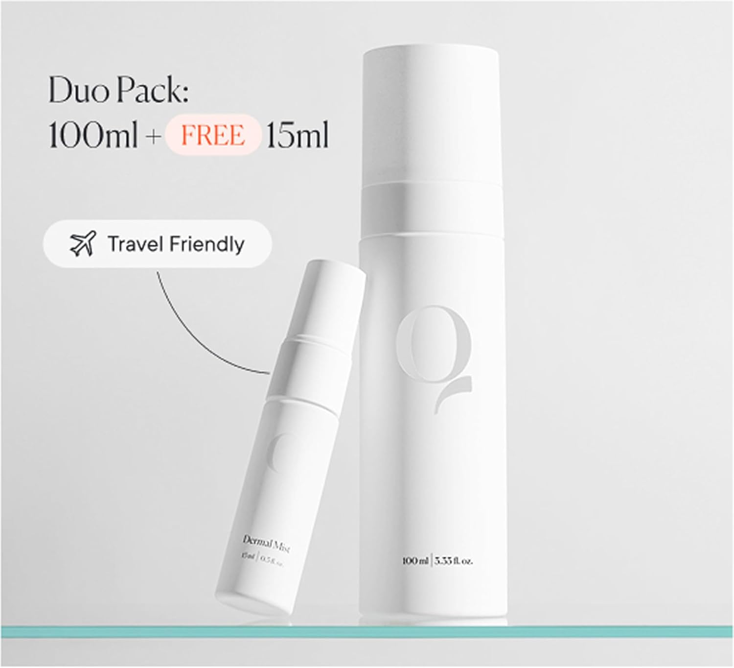 Qure Dermal Mist Duo Hypochlorous Acid Spray for Face, Skin and Body, HOCl Facial Hydrating Spray, Calm irritation, Reduce redness, Purify skin, Support barrier repair (100ml + 15ml Travel Duo)