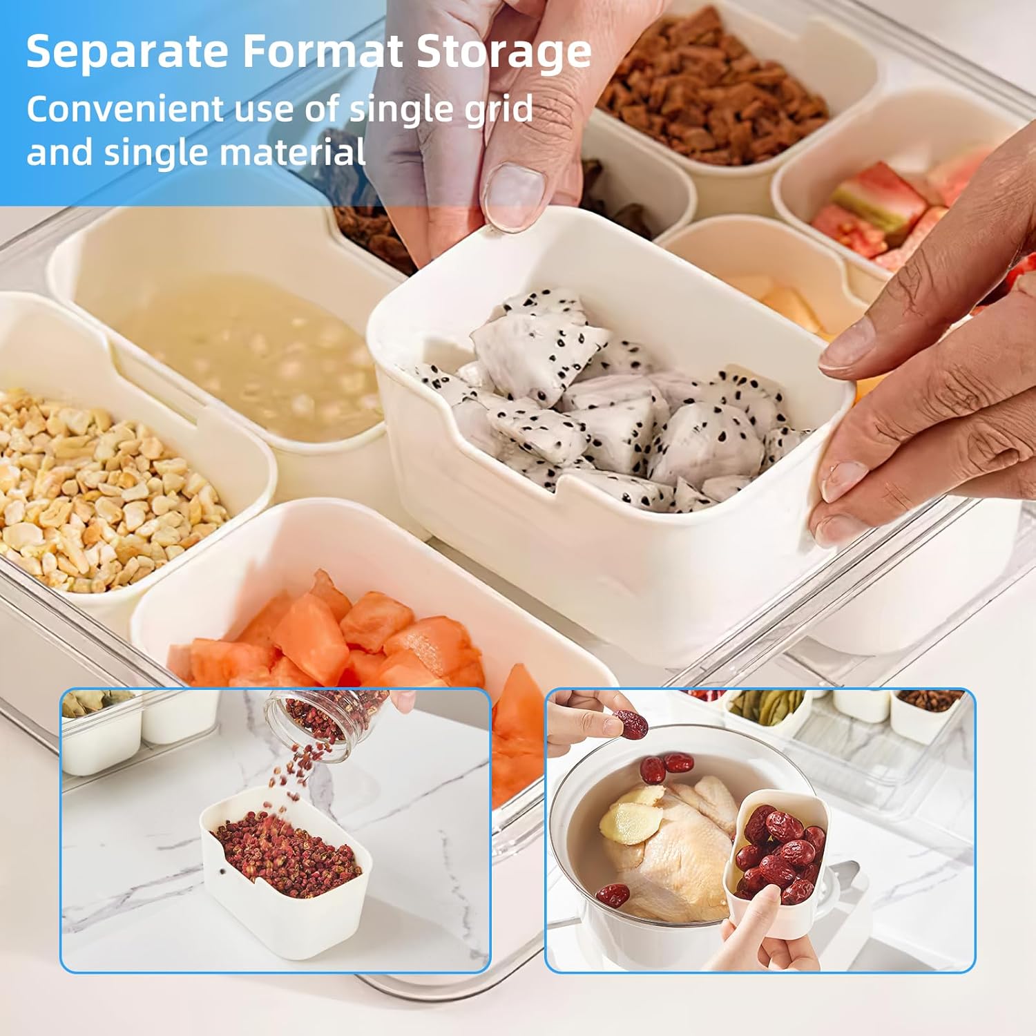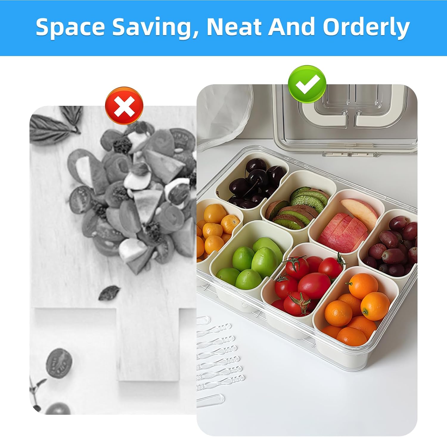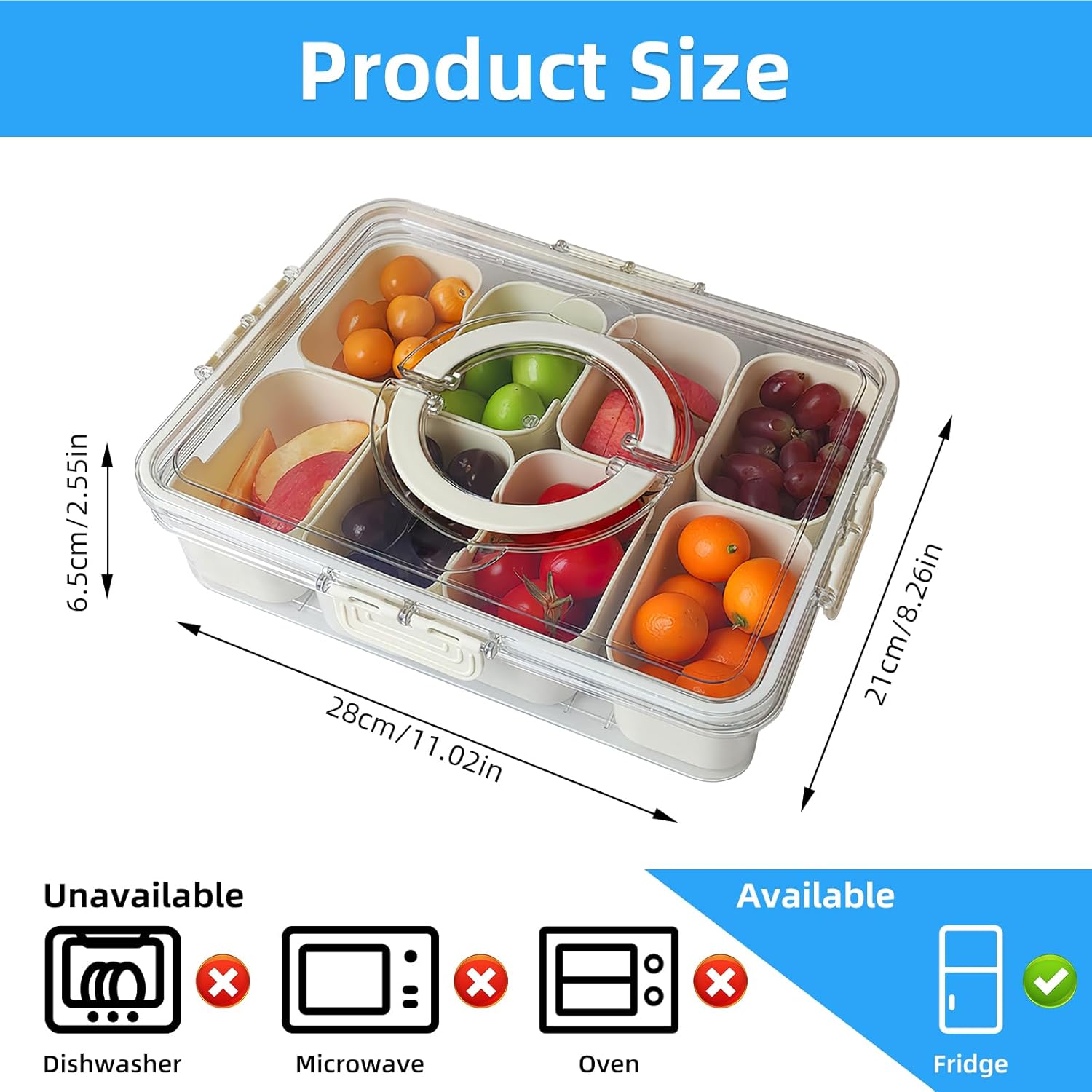 • 🍱 Smart, Customizable Compartments: Comes with 8 removable dividers! Easily create compartments of any size to neatly organize nuts, berries, candy, veggies, crackers, lunch items, or party bites. Impress guests with beautiful, orderly presentations.