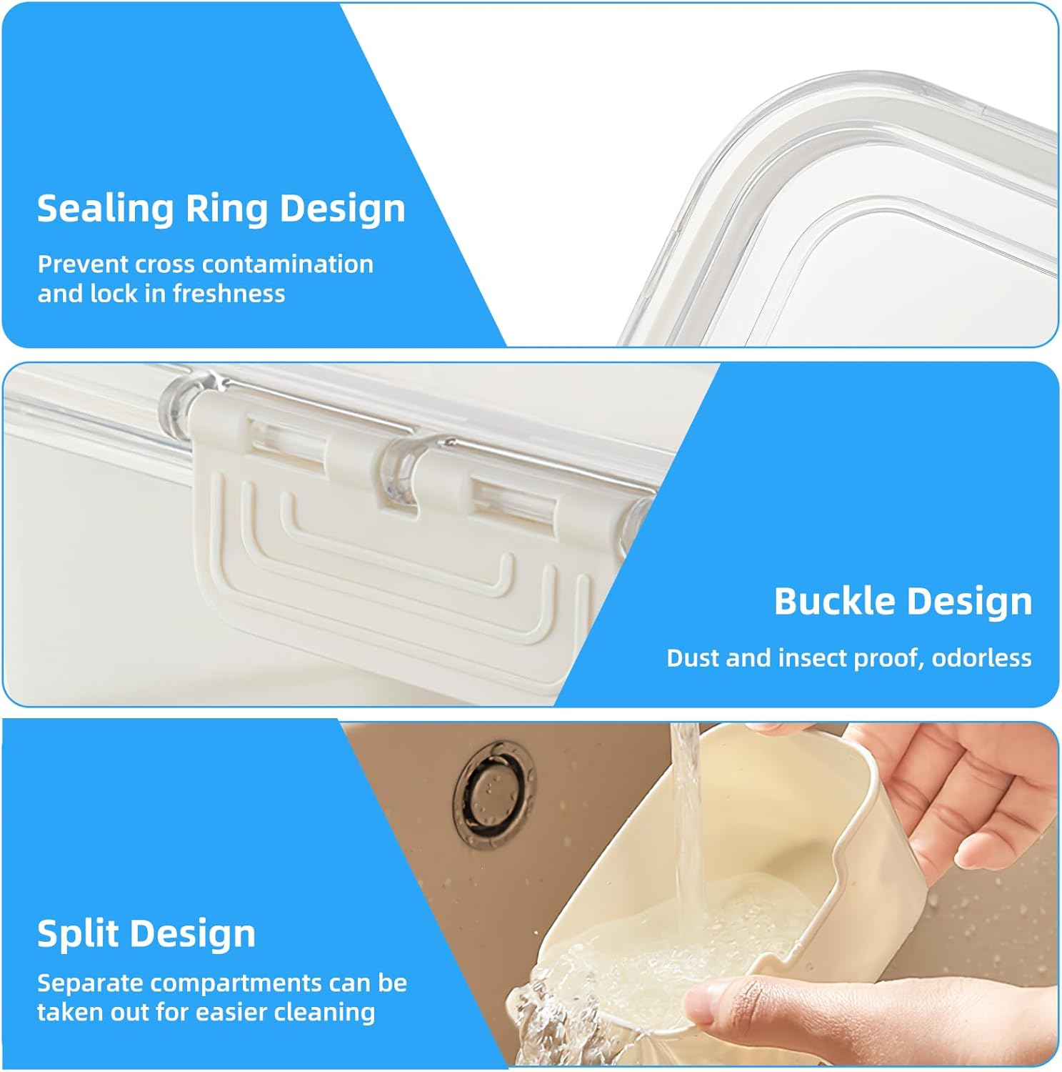 • 🔒 Lock in Freshness, Prevent Leaks: Features a built-in silicone sealing ring within the secure lid. This airtight seal keeps food fresh longer and prevents leaks or spills, making it perfect for fridge storage (safe down to 14°F / -10°C). Ideal for cut fruits, salads, dips, deli meats, and cheese!