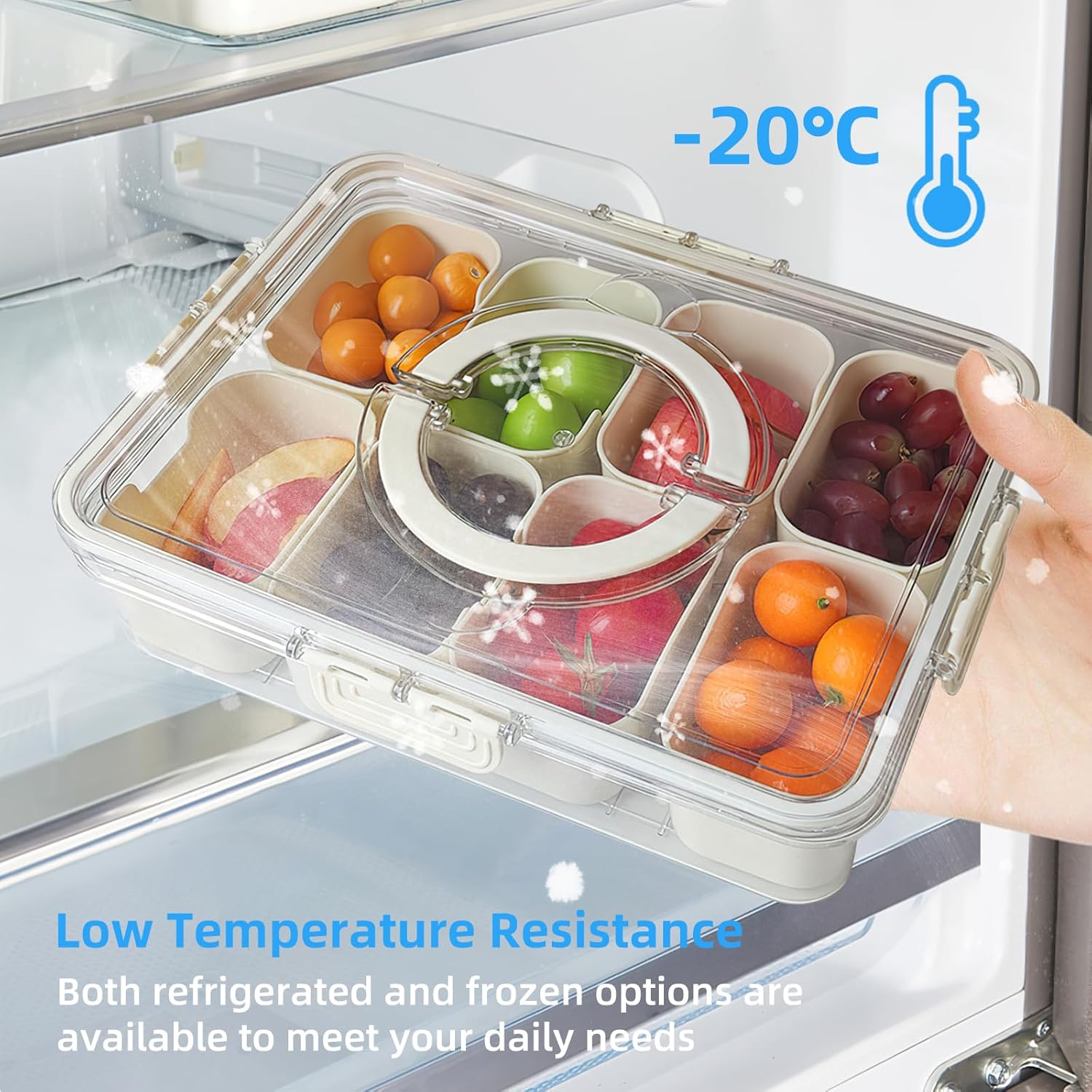 Snackle Box Container 8-Section,Clear Divided Tray w/Secure Lid & Handle