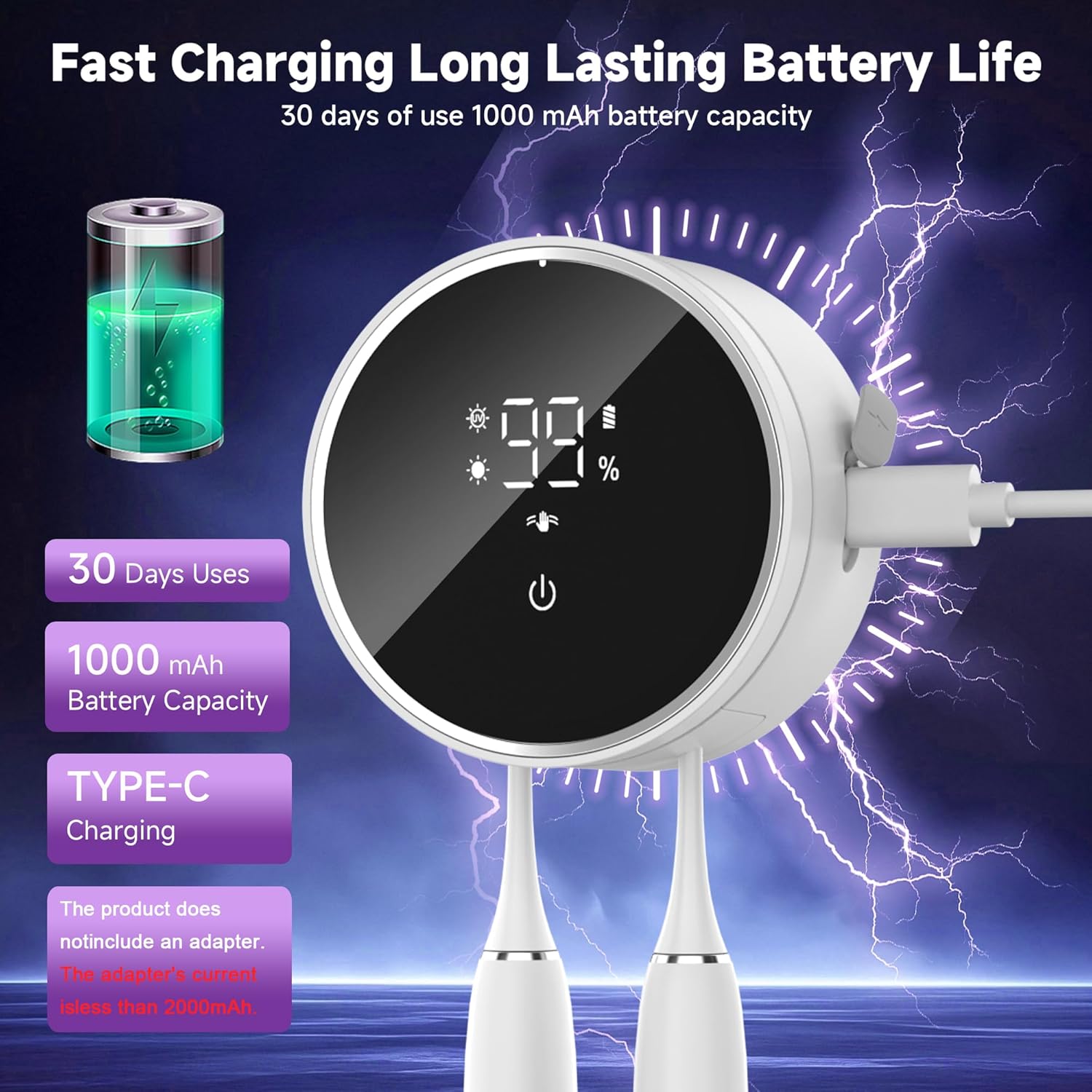 • Package Includes -1 Toothbrush Cleaner, 3 Holder Accessories, 1 Wall Bracket, 1 Sided Strong Glue, 1 USB Cable (Adaptor not Included—please charge the Toothbrush Cleaner using a 5V-1A adapter), 1 Instruction Manual