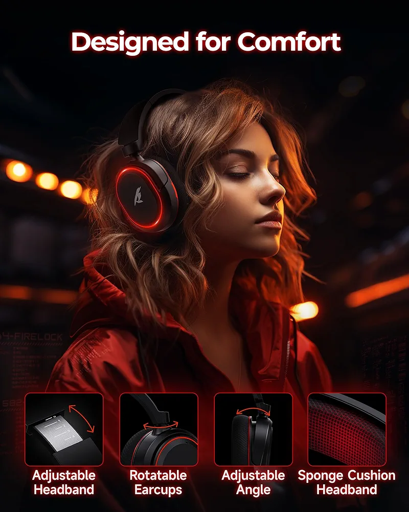 🎙️【Retractable ENC Noise-Canceling Microphone & One-touch Mute】Equipped with a 360° omnidirectional Noise-Canceling microphone. Our wireless headset can accurately calculate the speaker’s direction, preserving the target voice while eliminating background noise for improved call quality. Gaming headsets with mic ensure your voice are relayed in high-definition clarity to your teammates, even in the heat of battle. Meanwhile, the retractable microphone combines the advantages of various types of microphones: ultra-low latency, high sound reproduction, concealability, and portability, the perfect gift for gamers and music enthusiasts.